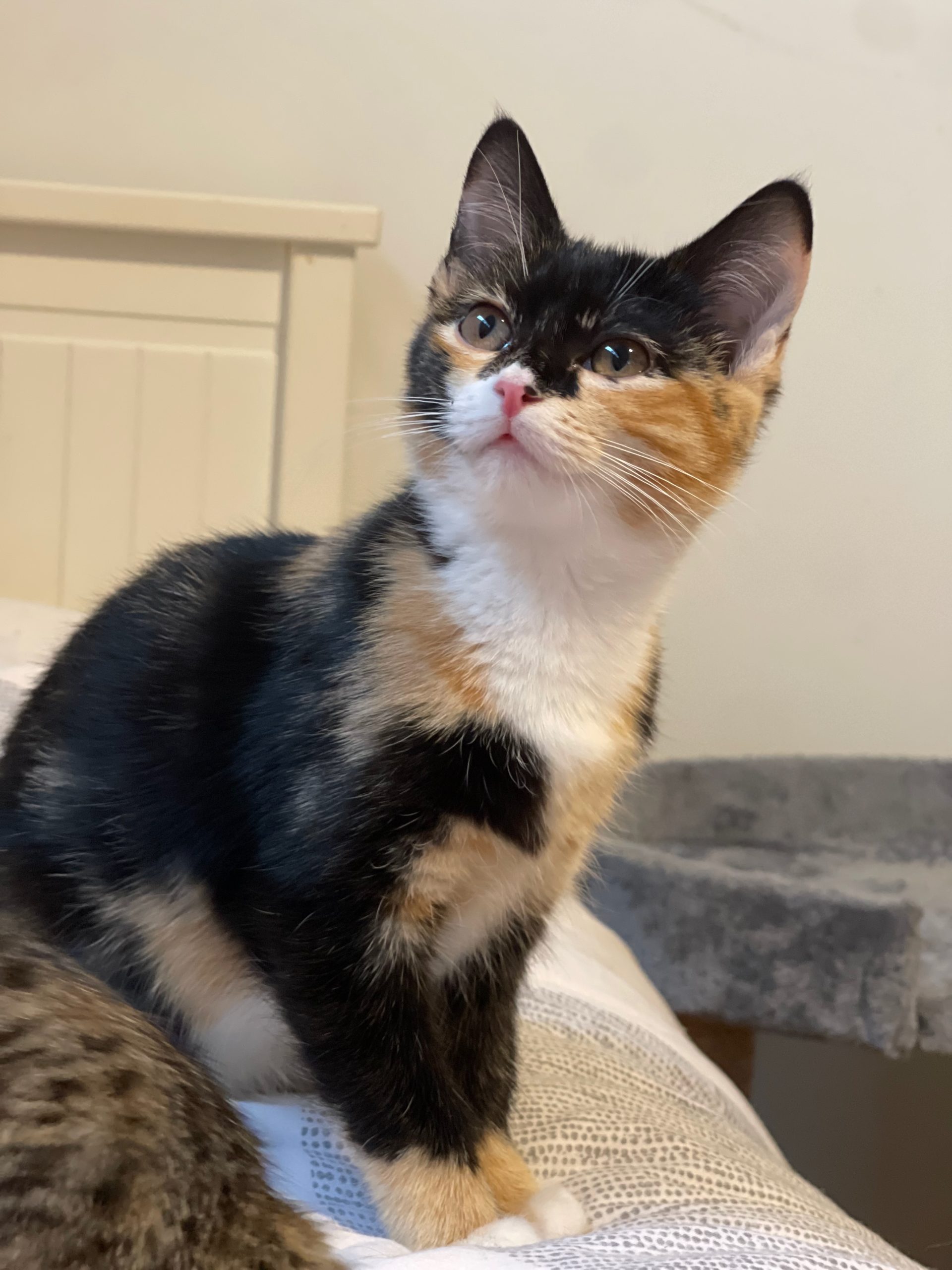 Because she is young and social, Buttercup will need to be adopted into a home with another young cat or kitten. This will help keep her occupied and support appropriate social behaviour.