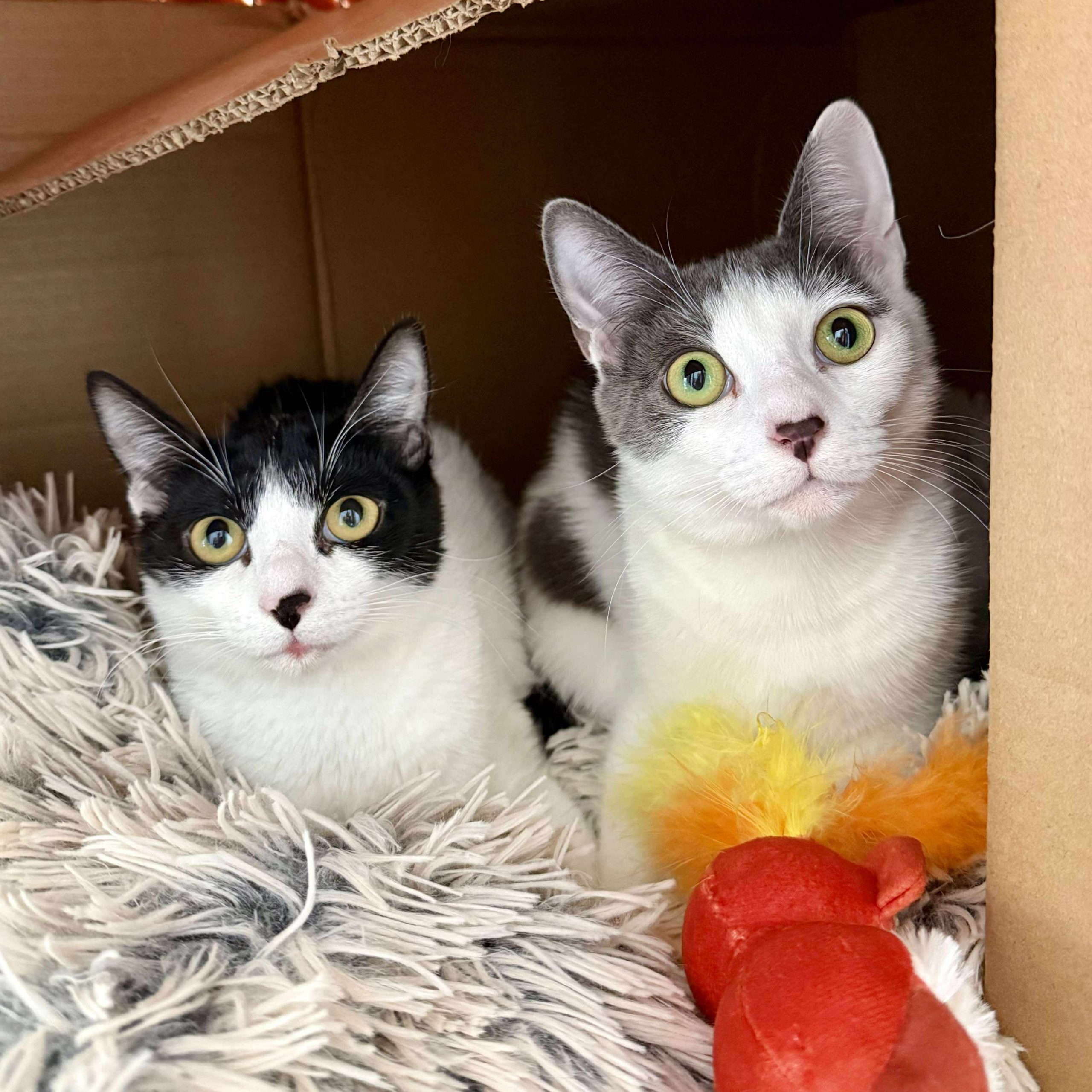 Because they draw comfort from each other, they’ll do best staying together in a calm environment where they can build confidence at their own pace. Daisy and Boo haven’t been tested with dogs, but they would likely prefer a home without too much noise or commotion. Once they’ve settled, these two gentle souls will reward their new family with companionship, purrs, and plenty of playtime fun.