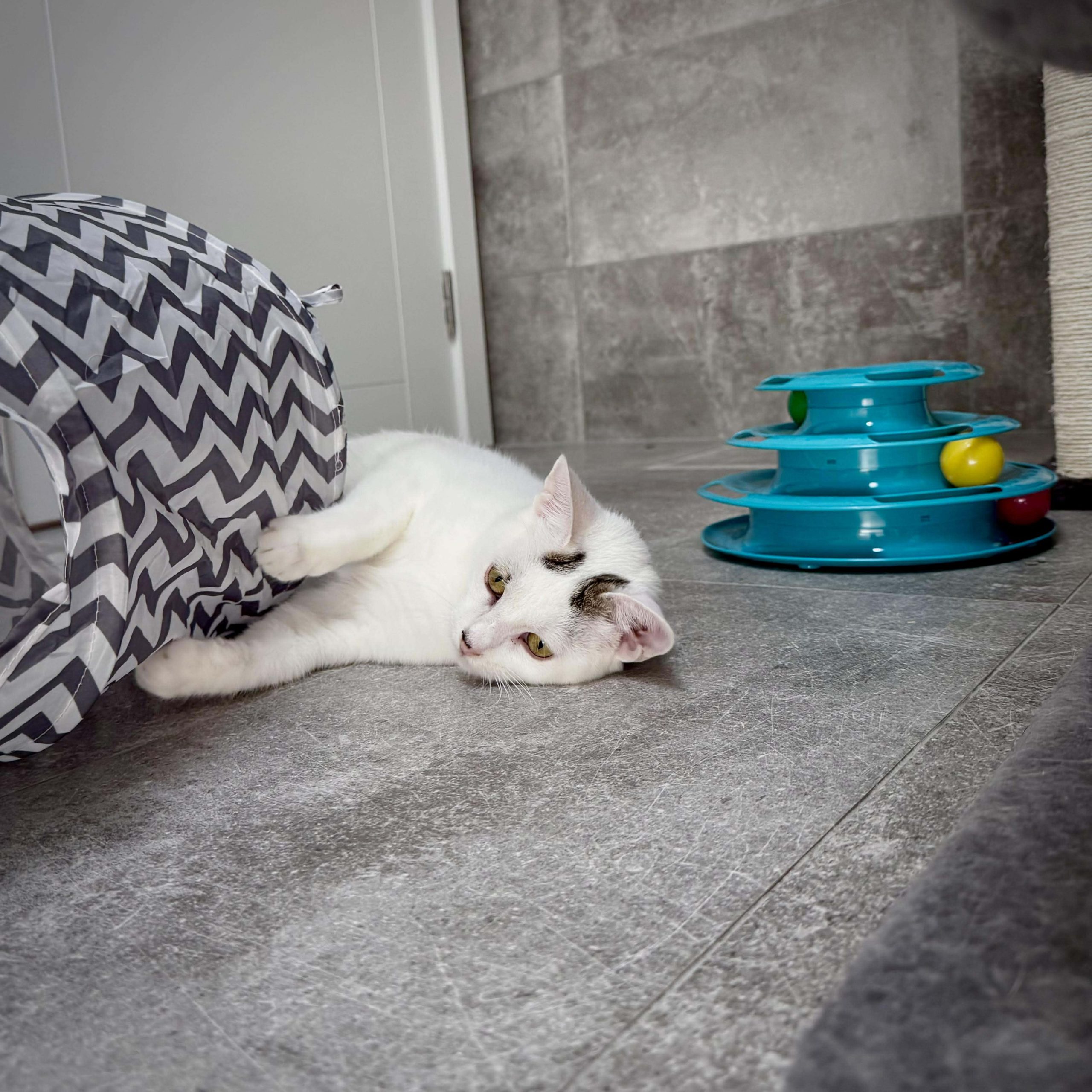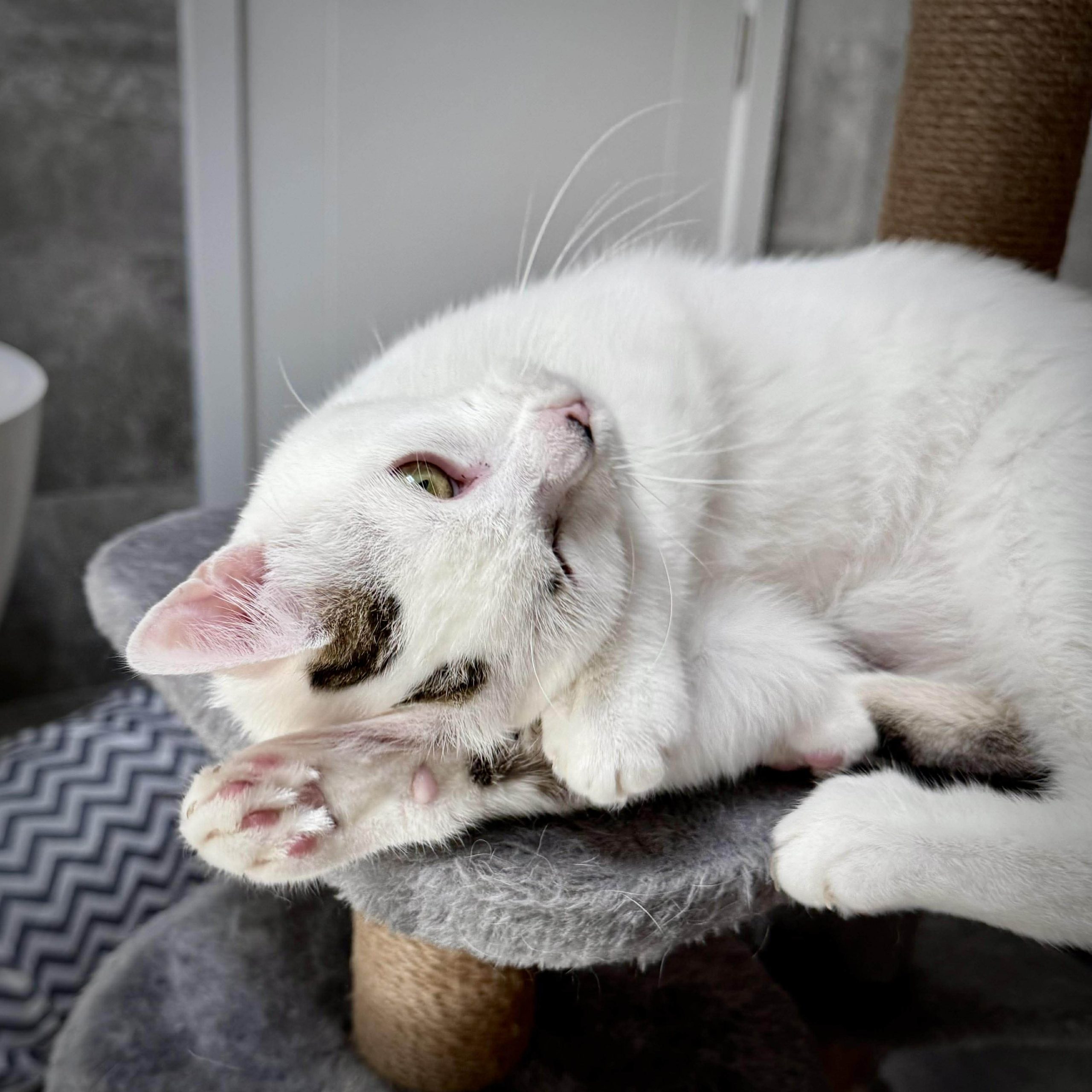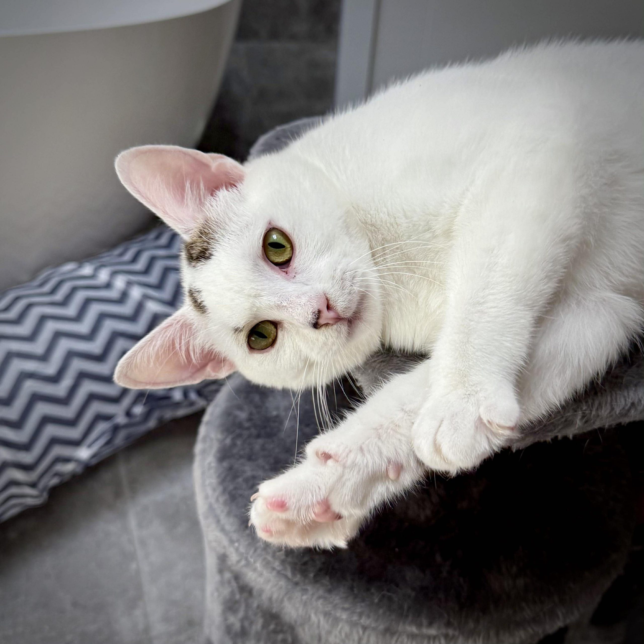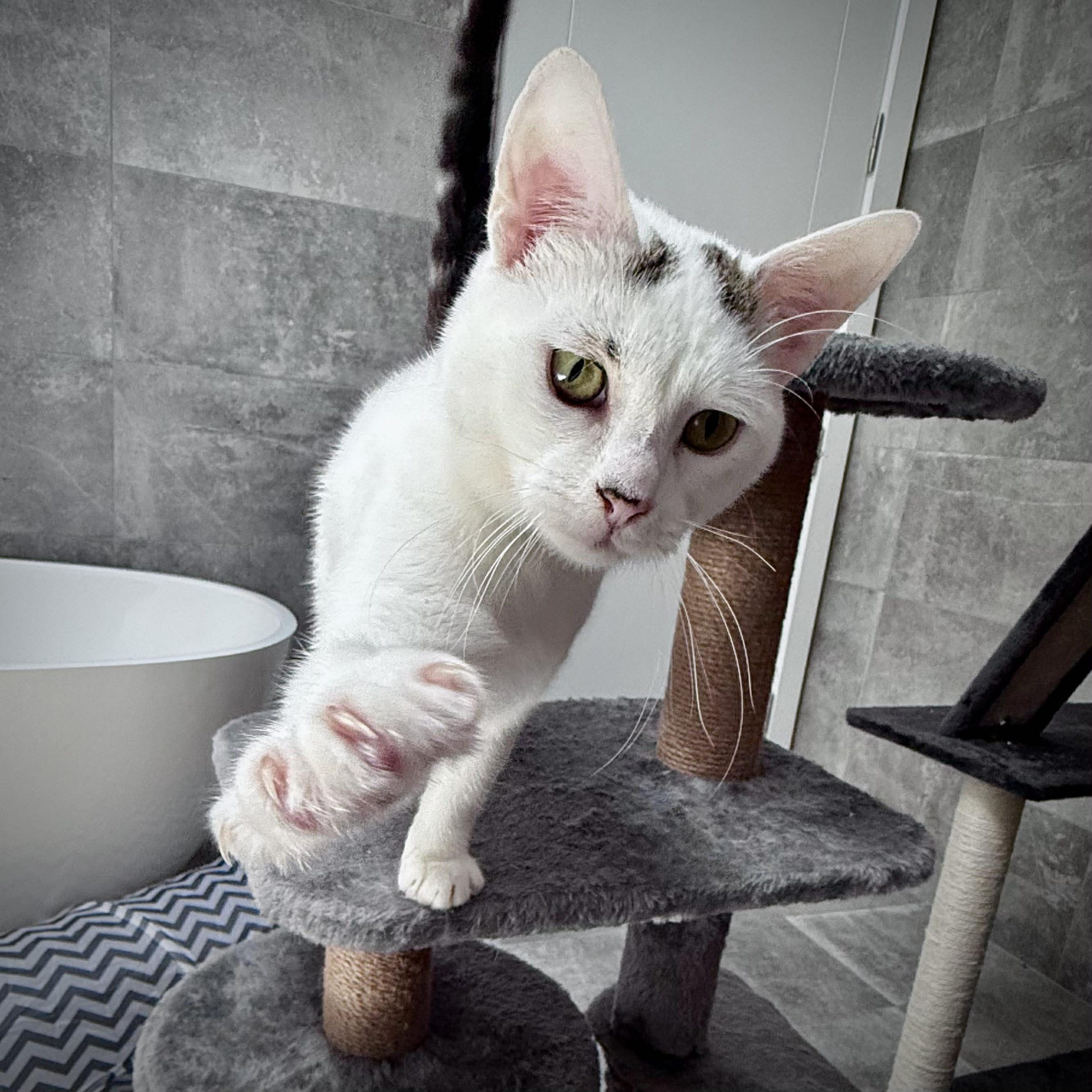 Kyla is a young, playful kitten with plenty of energy and a big love for people. She’s the first to investigate new toys, chase anything that moves, and turn everyday objects into games. When she’s finished playing, she’s quick to seek out her humans for company, happily settling in for pats and attention.