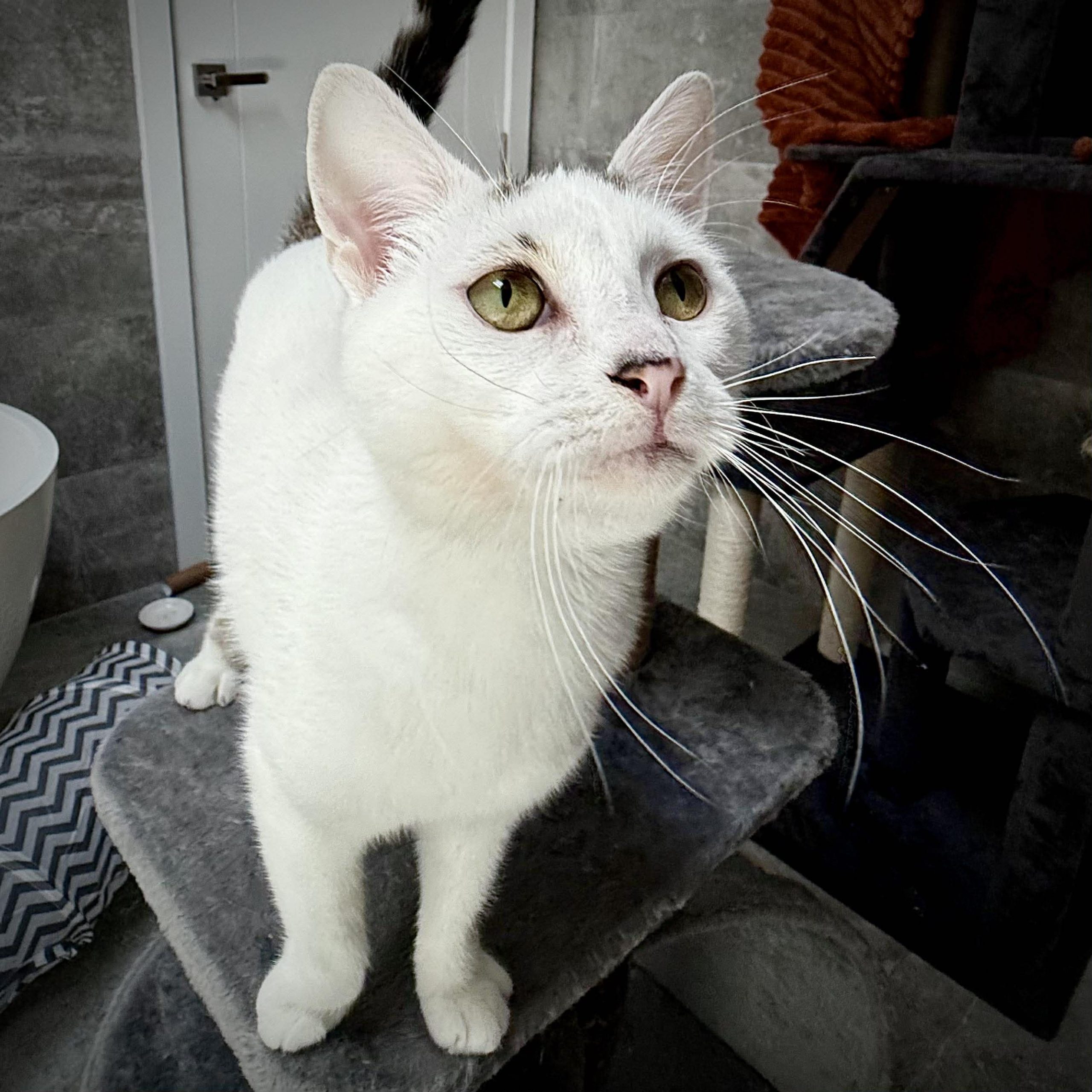 Because she’s so active and social, Kyla needs another young cat or kitten to play with. She thrives with a companion who can match her energy, help her learn good cat manners, and keep her entertained. She’s confident, adaptable, and settles easily into household routines.