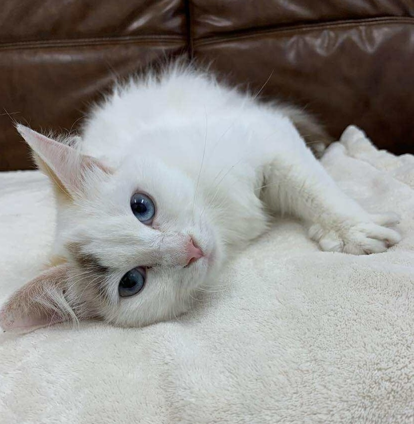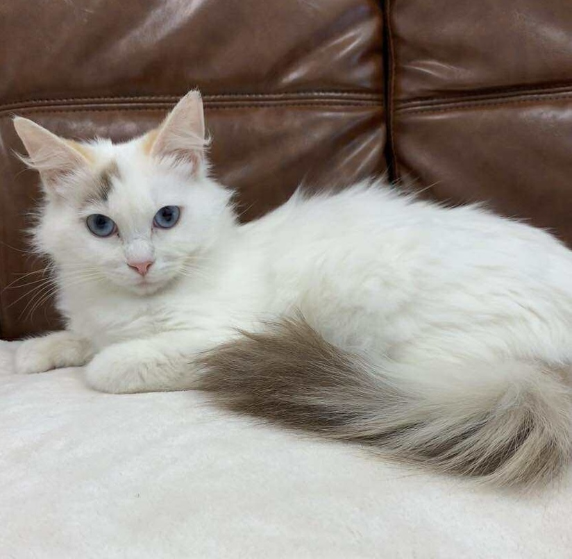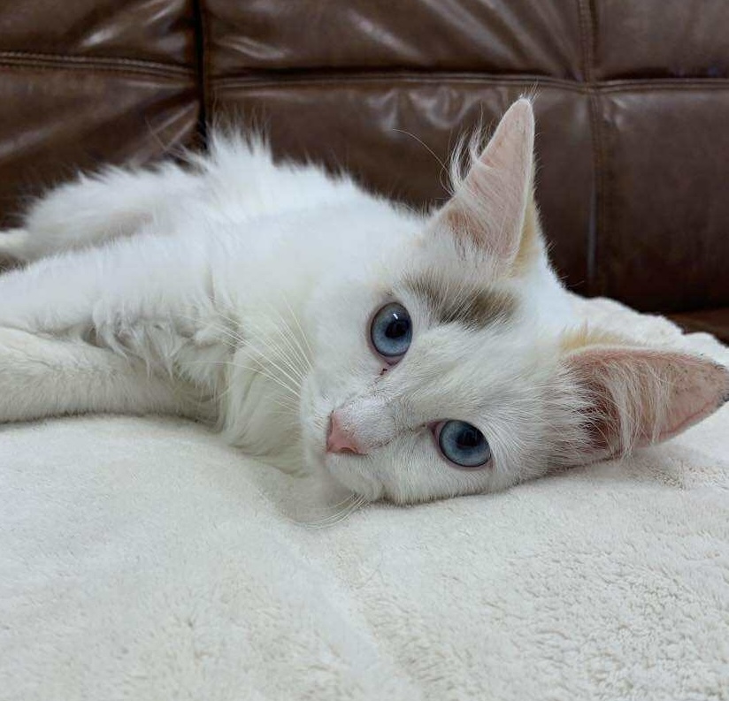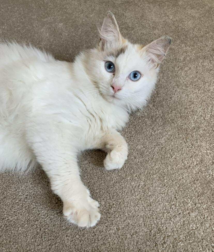 She isn’t bonded with another cat but would do best in a home with a friendly kitten or young cat to keep her company. Mishka is easygoing, good with kids, and untested with dogs.
