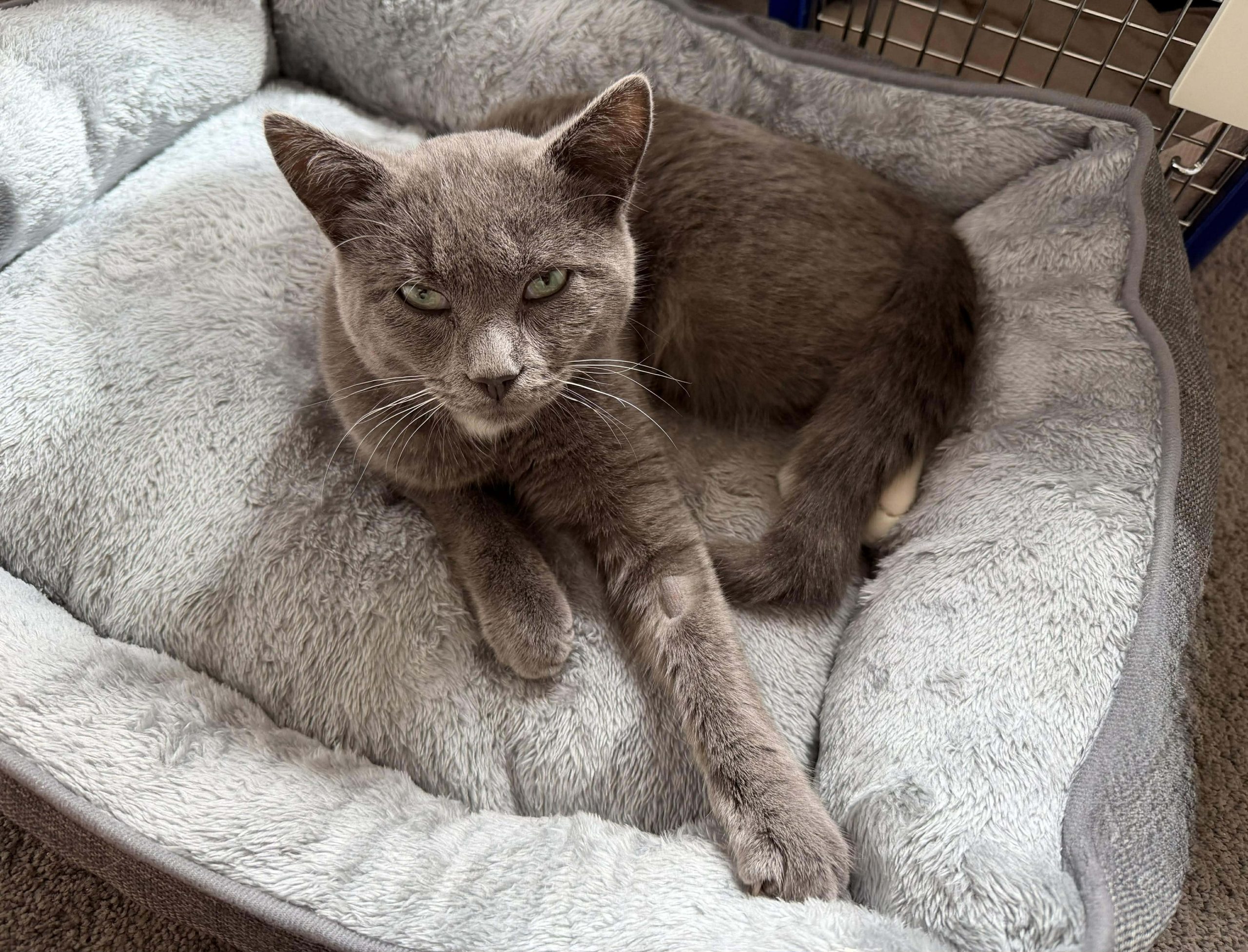 Moby is a very smoochy boy who loves pats and cuddles. He will thrive in a house where he gets lots of attention and play. Moby has enjoyed meeting lots of new people while in foster care and should be fine in a house with another cat given time to get to know them. He is untested with dogs or children.