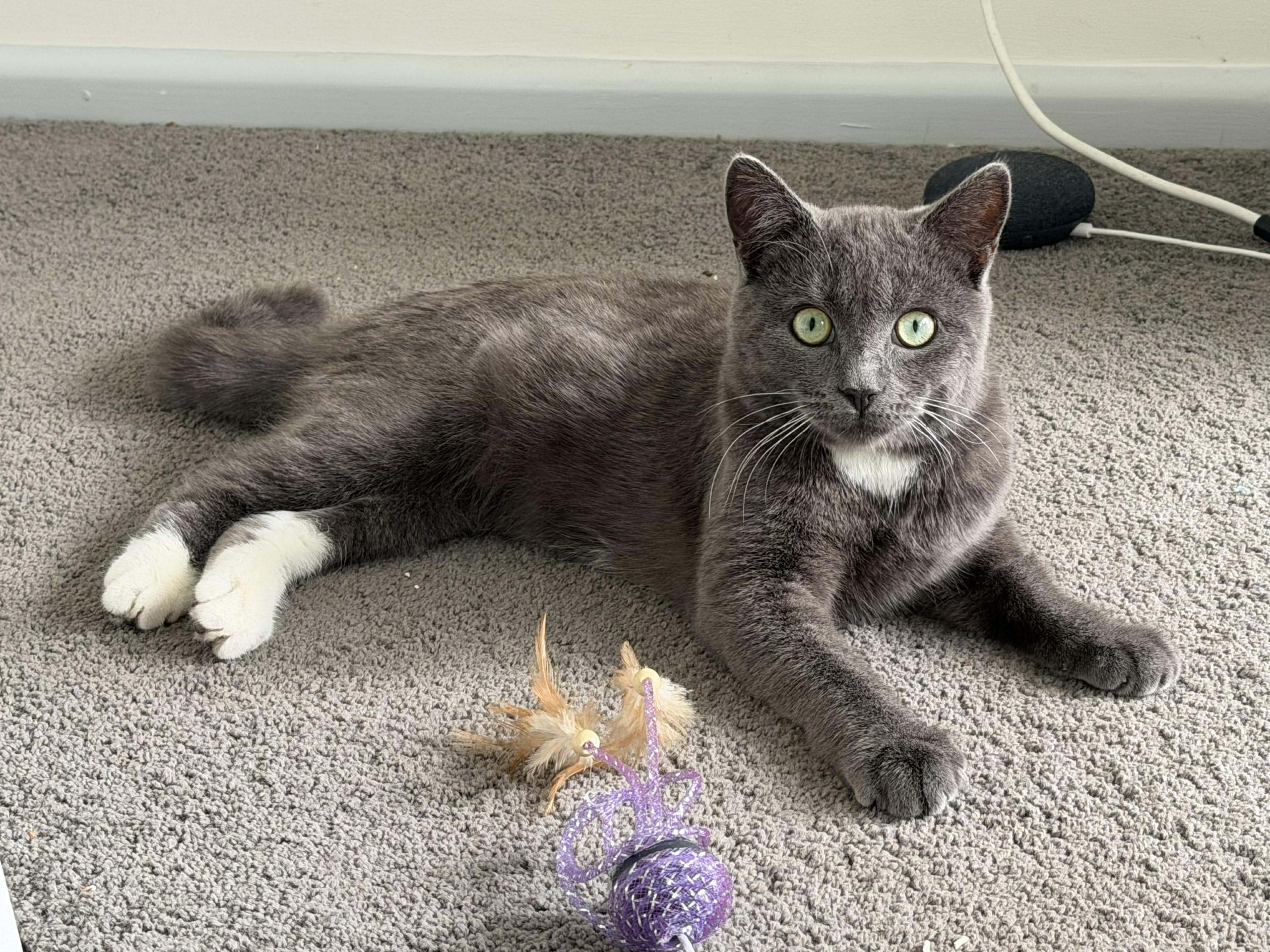 Moby is an active, confident and friendly young cat. He loves to play and explore. Moby wants to investigate every new thing in his world. He would be keen to have another young cat to play with!
