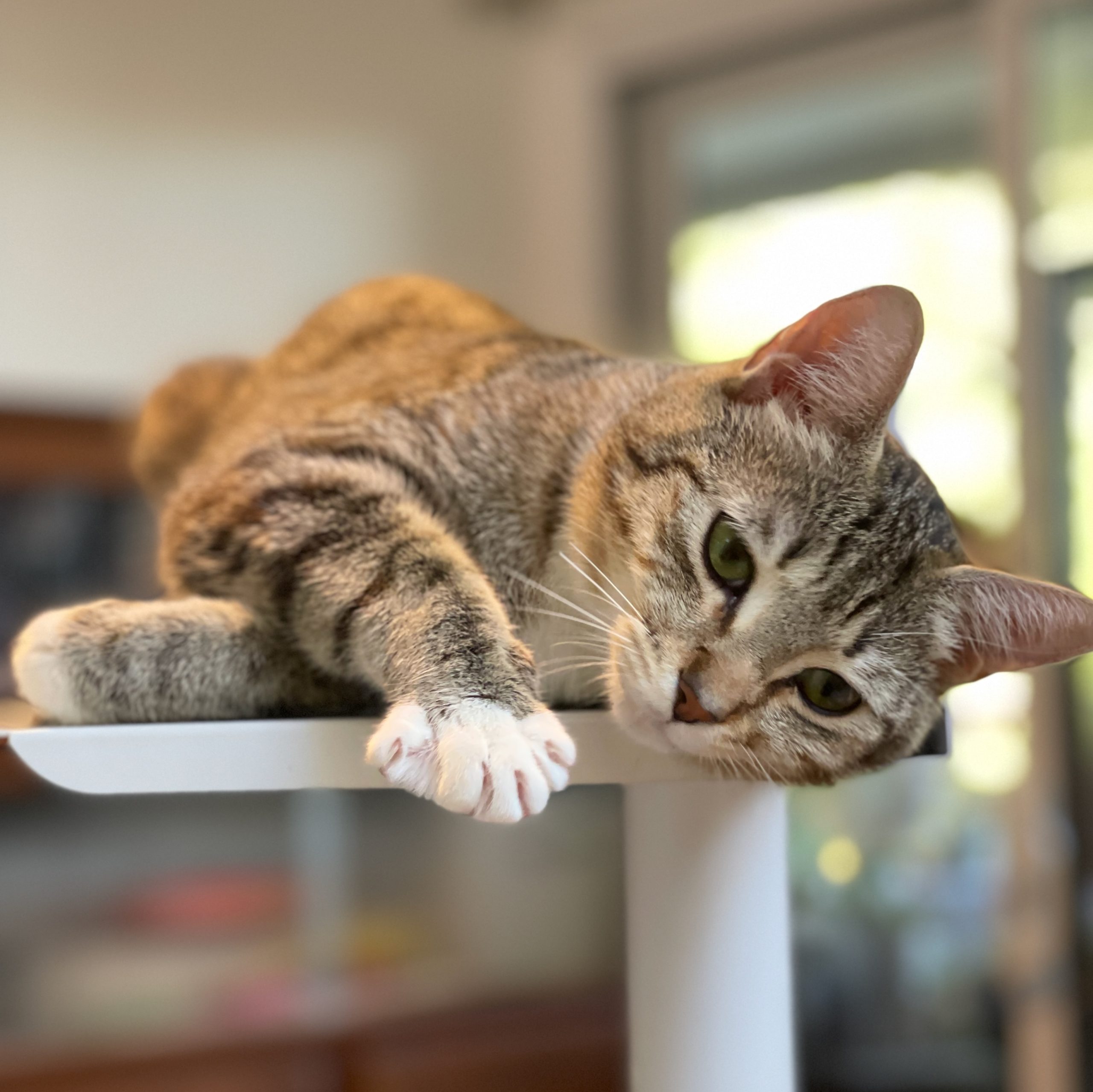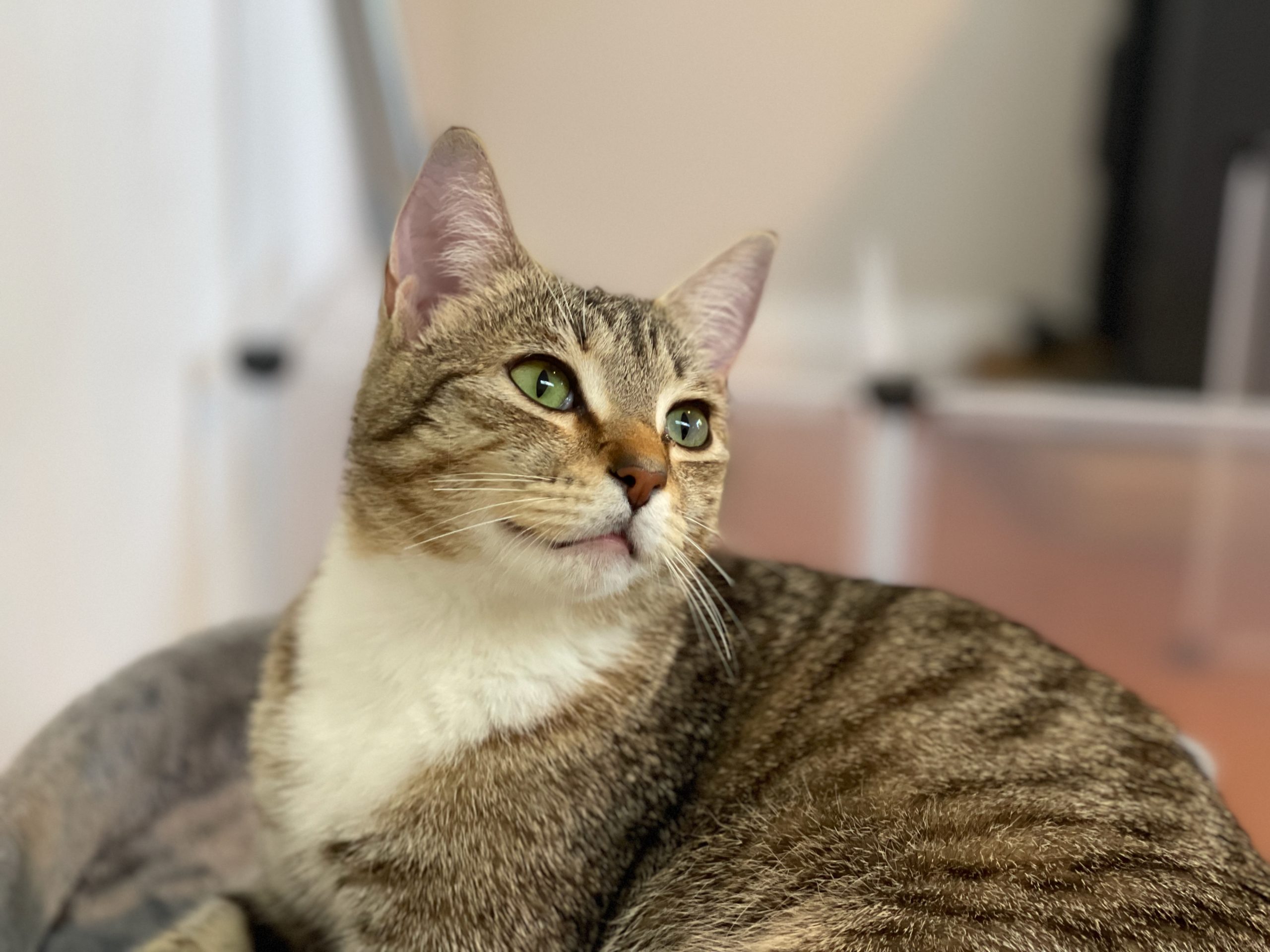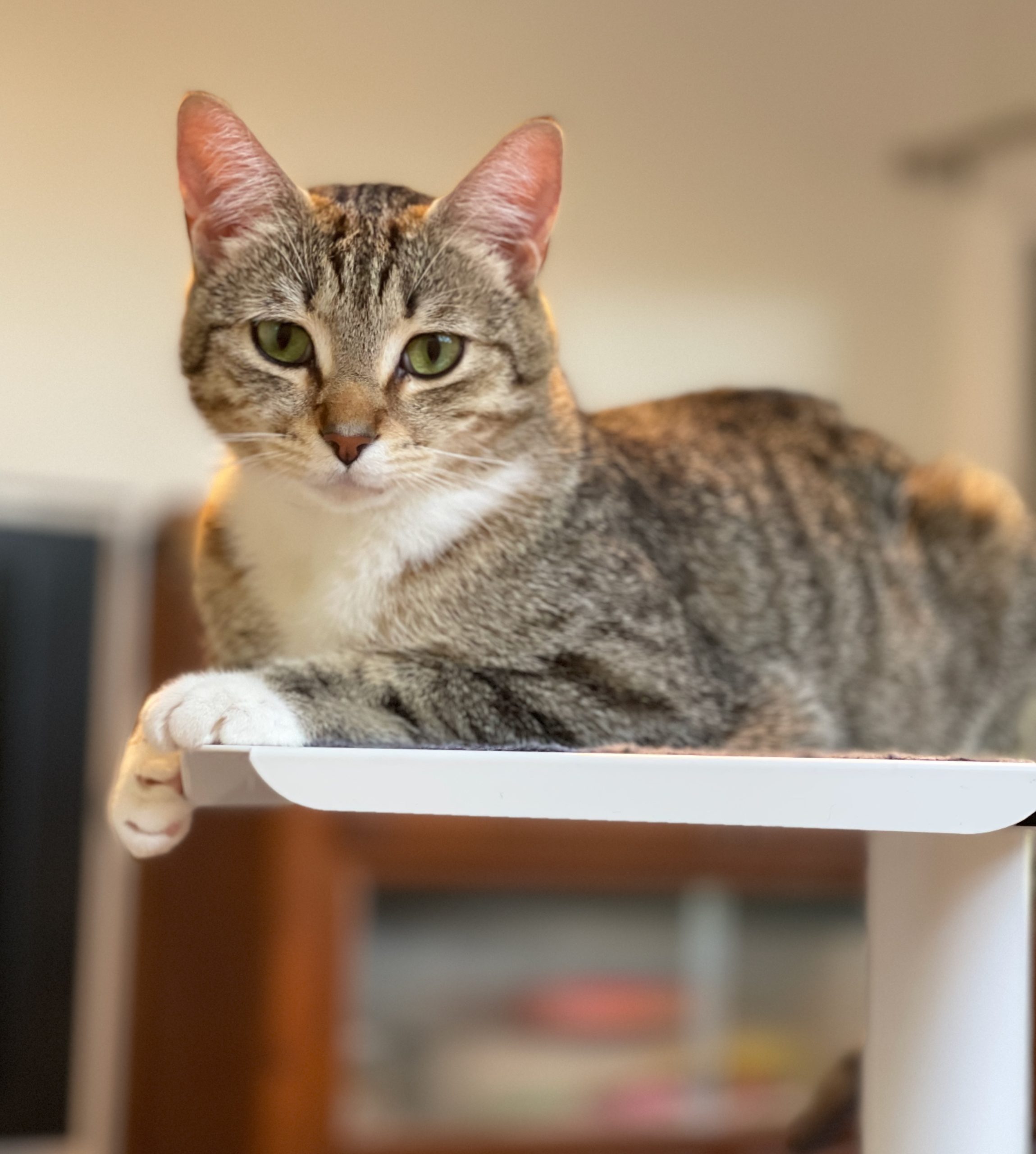 Rowan is a young, playful girl who loves being part of whatever her people are doing. She’s confident, curious, and always ready to investigate a new toy or explore a new corner of the house. When she’s not playing, she’s usually purring — she’s one of those cats who starts up the moment you walk into the room.